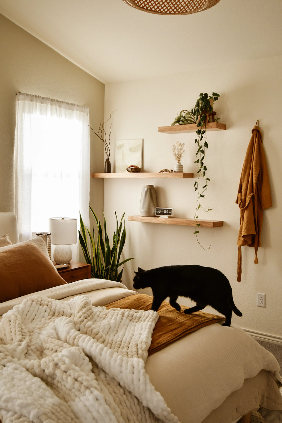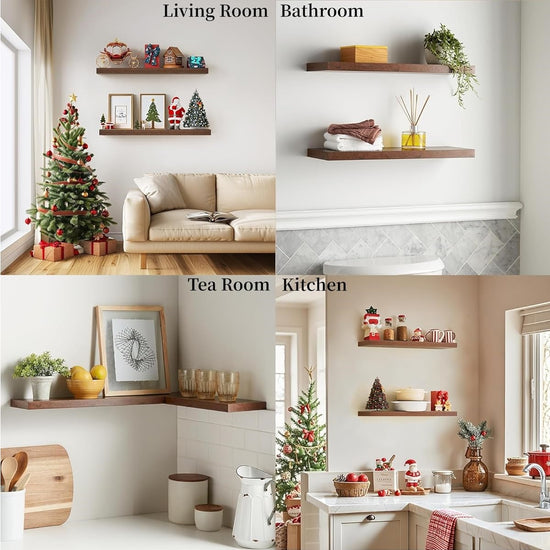 Our wall shelves provide extra storage space to organize small items and eliminate clutter in various rooms such as the bedroom, bathroom, and kitchen.