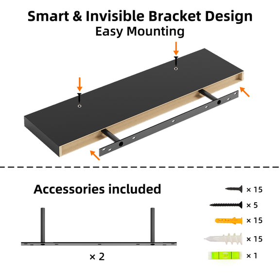 SUPERLELE 2 Pcs 22.5 inch Rustic Wood Wall Mounted Shelves Black