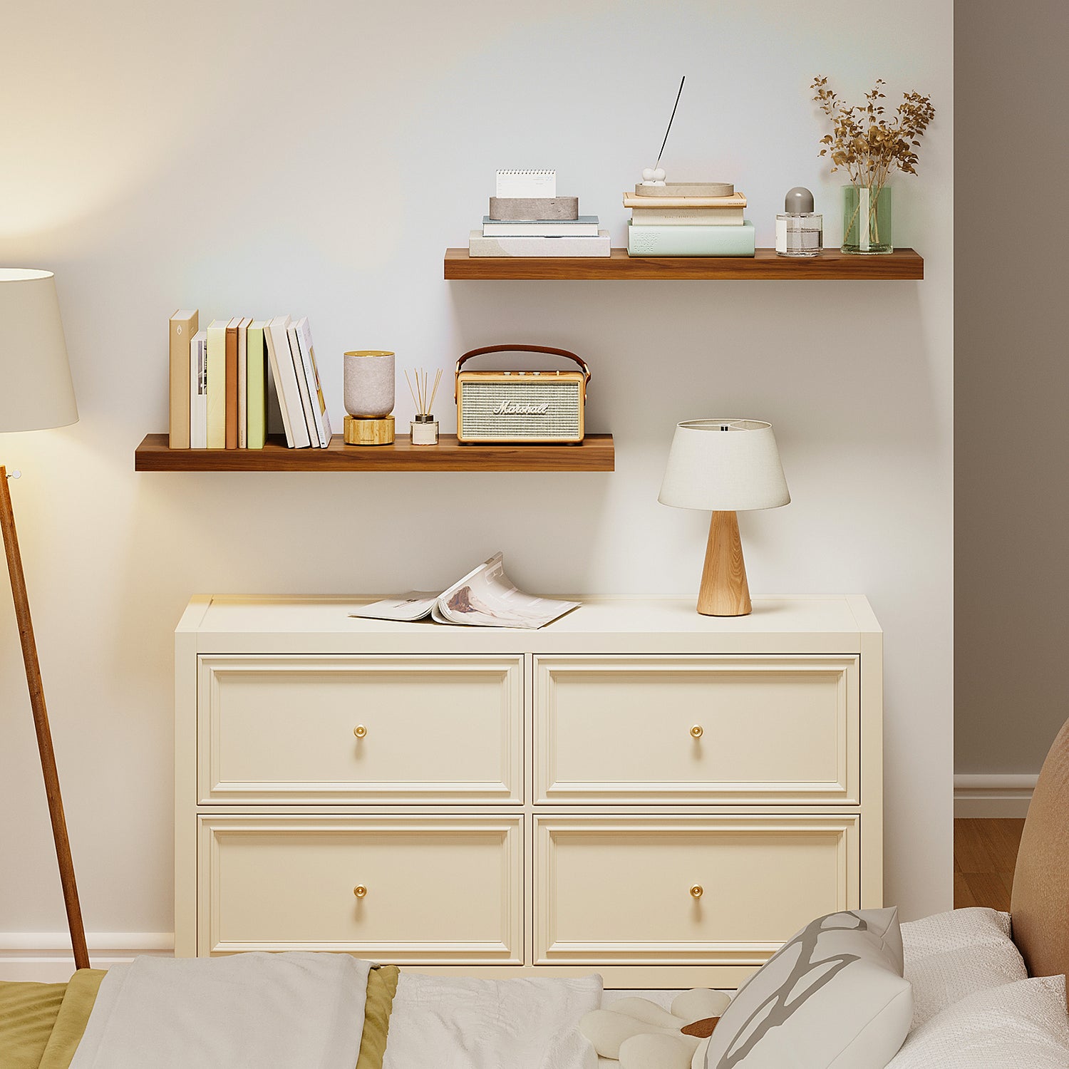 SUPERLELE 2 Pcs 22.5 inch Rustic Wood Wall Mounted Shelves Walnut