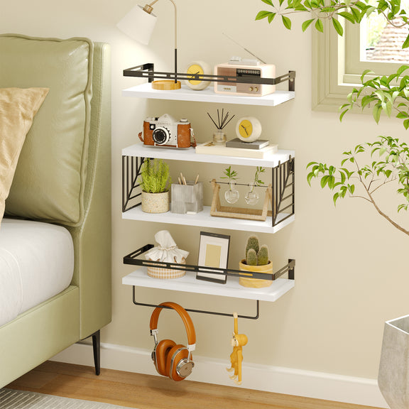 【Complete Kit】Comes with all hardware, level, and instructions for 20-minute installation (supports 20 lbs per shelf).