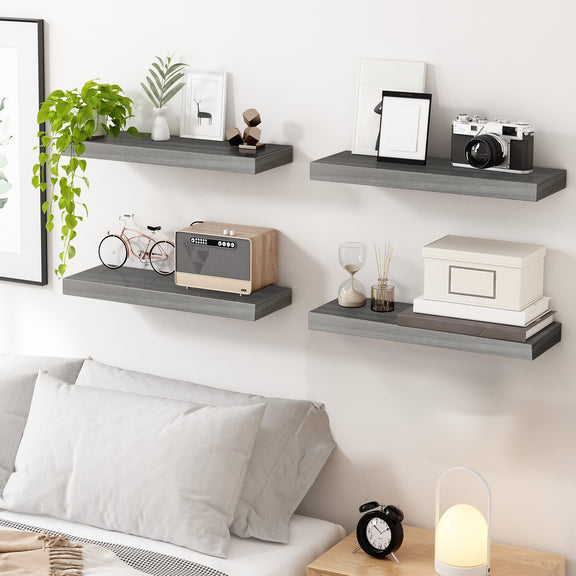 SUPERLELE 4-Pieces Floating Shelves for Wall, Wall Mounted Rustic Wood Shelves Grey