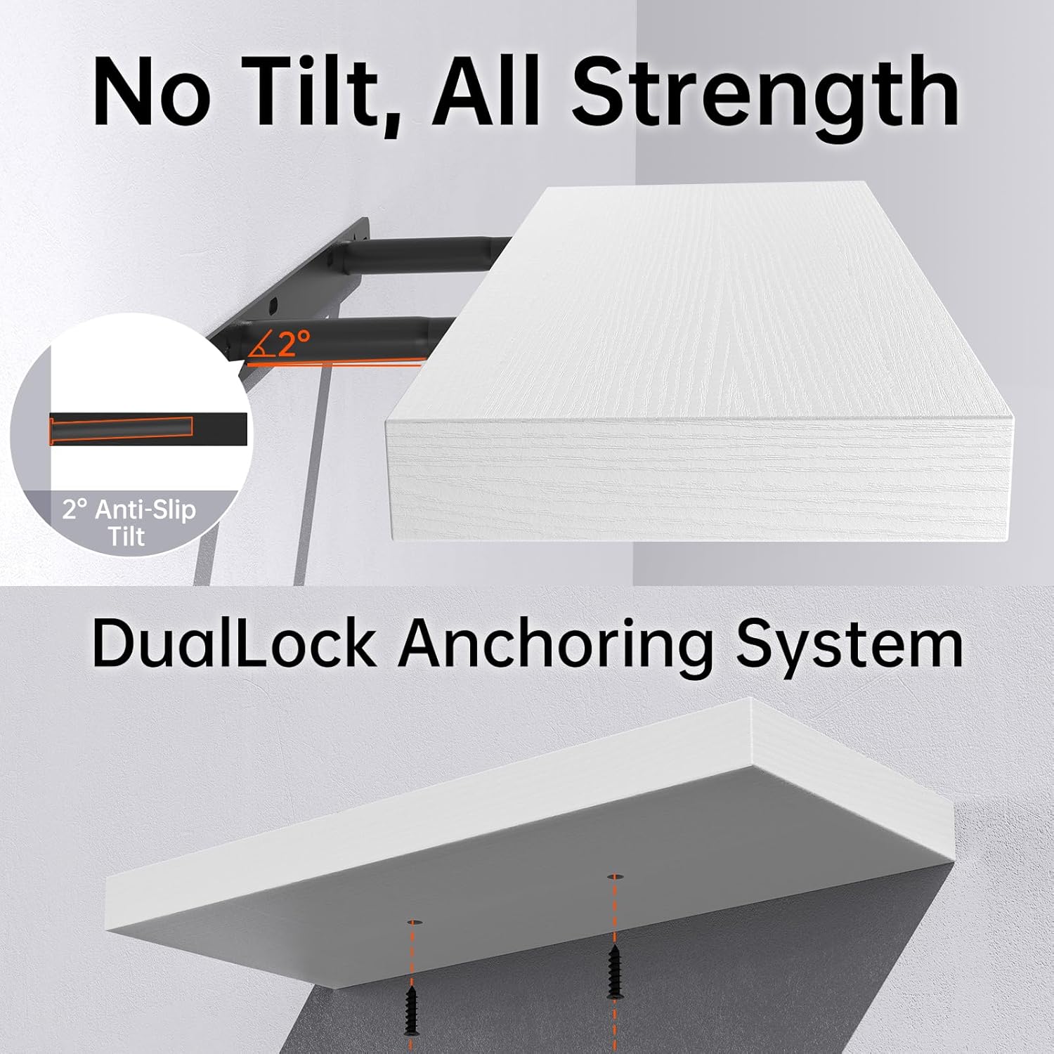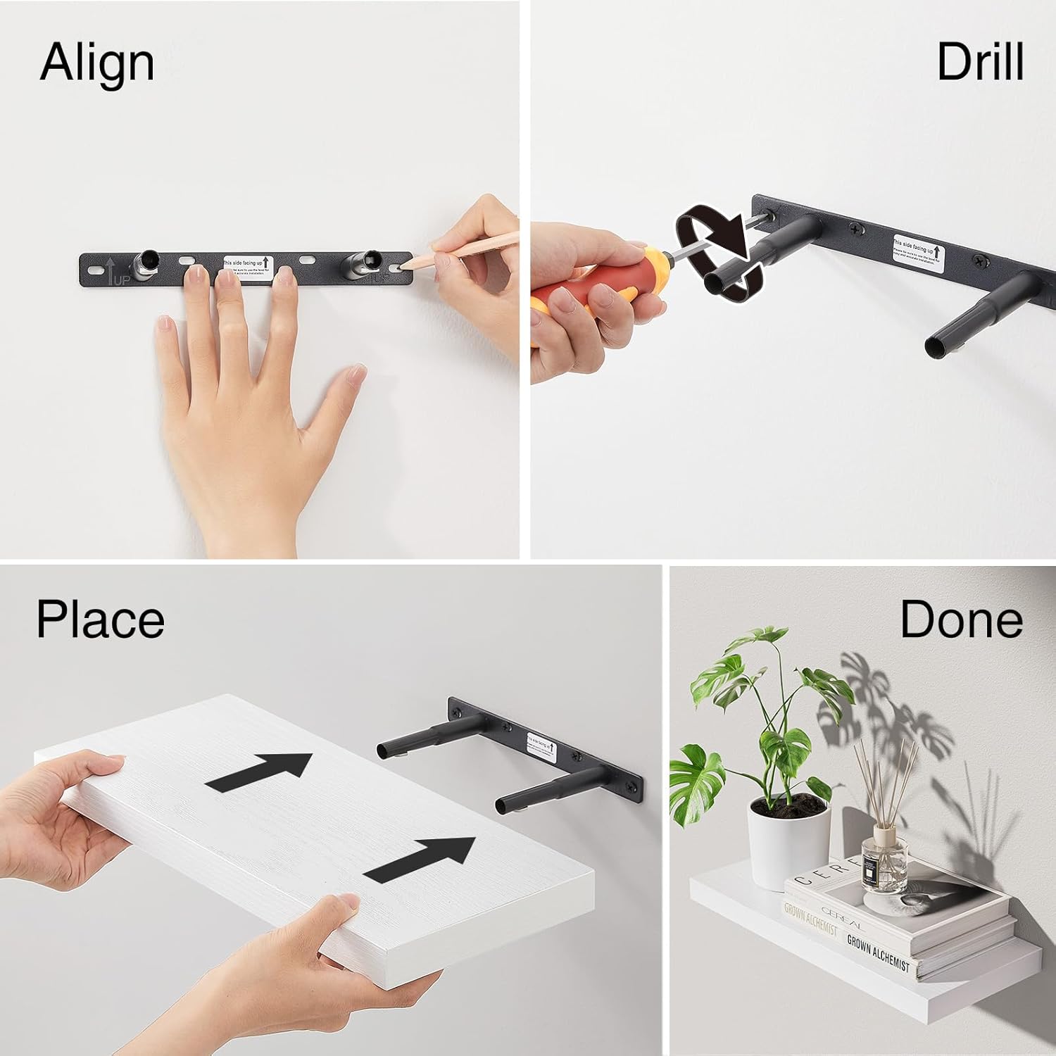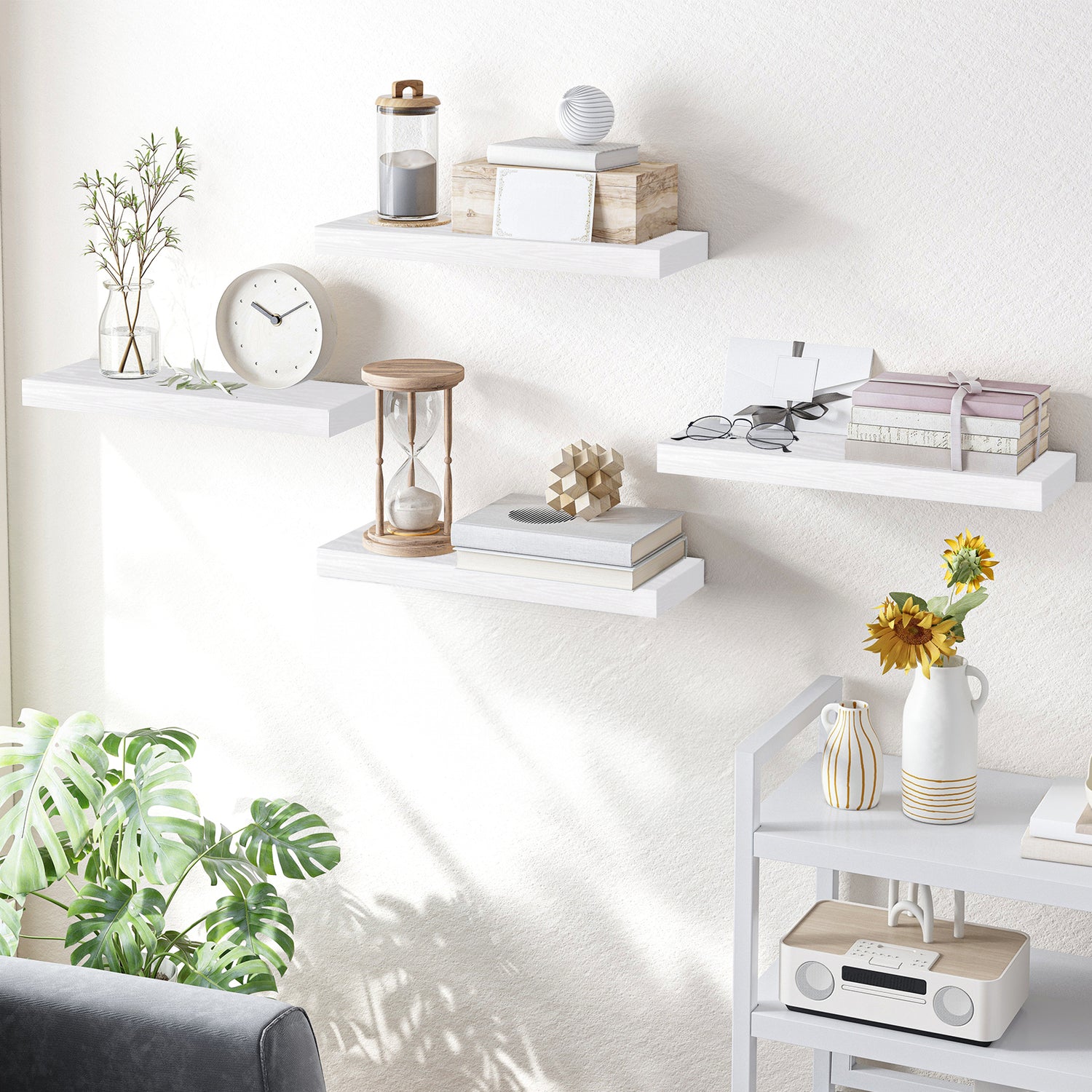 SUPERLELE 4-Pieces Floating Shelves for Wall, Wall Mounted Rustic Wood Shelves White