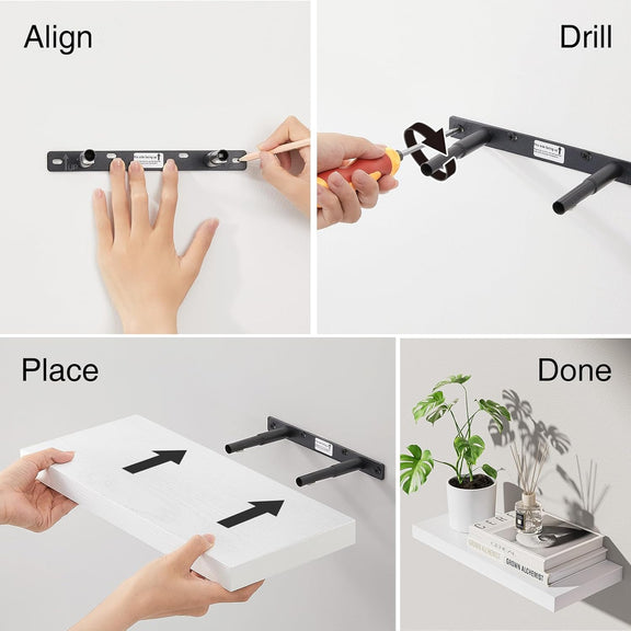Be at ease about messy floors and desks! How about making use of the walls? Thanks to these floating shelves with realistic wood textures and invisible metal brackets, your house will look more rustic and well-kept.