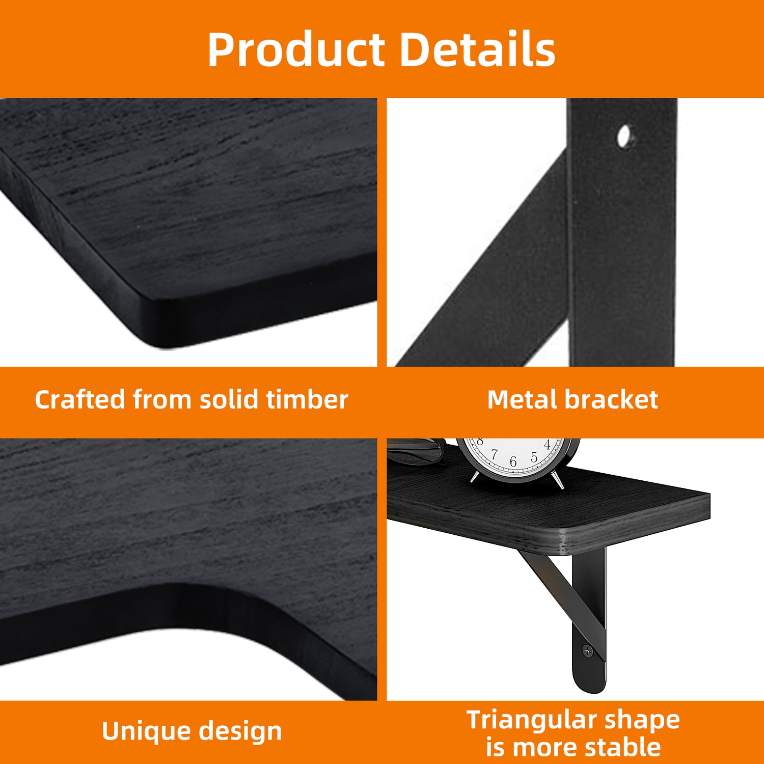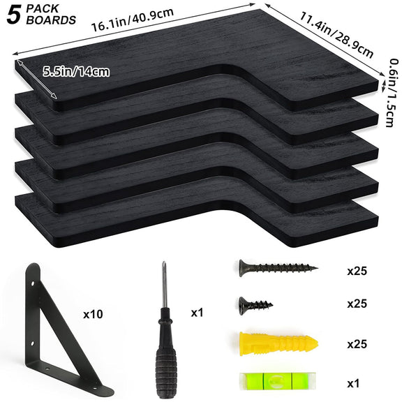 SUPERLELE 5-Pieces Floating Shelves for Wall, Rustic Wood Wall Mounted Corner Shelf Black