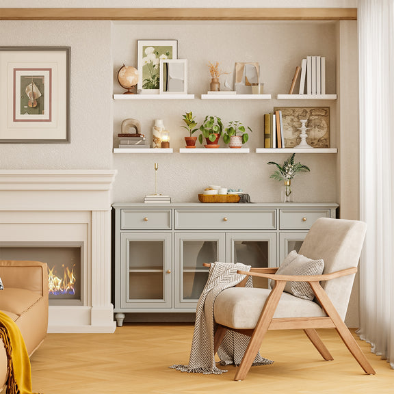 Our floating shelves wood bring functionality to daily living; They create versatile storage space with various combinations, can pair with various styles of home and furniture, will be an ideal choice for wall decoration in rooms, bedrooms, and bathrooms.