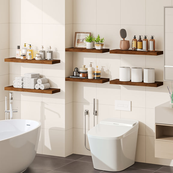 SUPERLELE 6 Pcs 3 Sizes Wooden Wall Mounted Floating Shelves